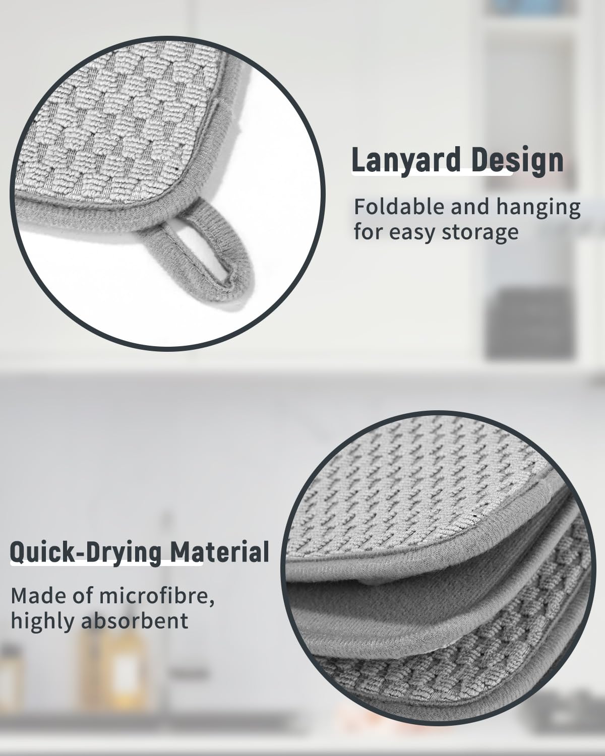Eigenschaften: Starke Wasseraufnahmefähigkeit, rutschfeste Unterseite, hitzebeständig, frostbeständig, geräuschdämmend, schützt Geschirr vor Beschädigungen