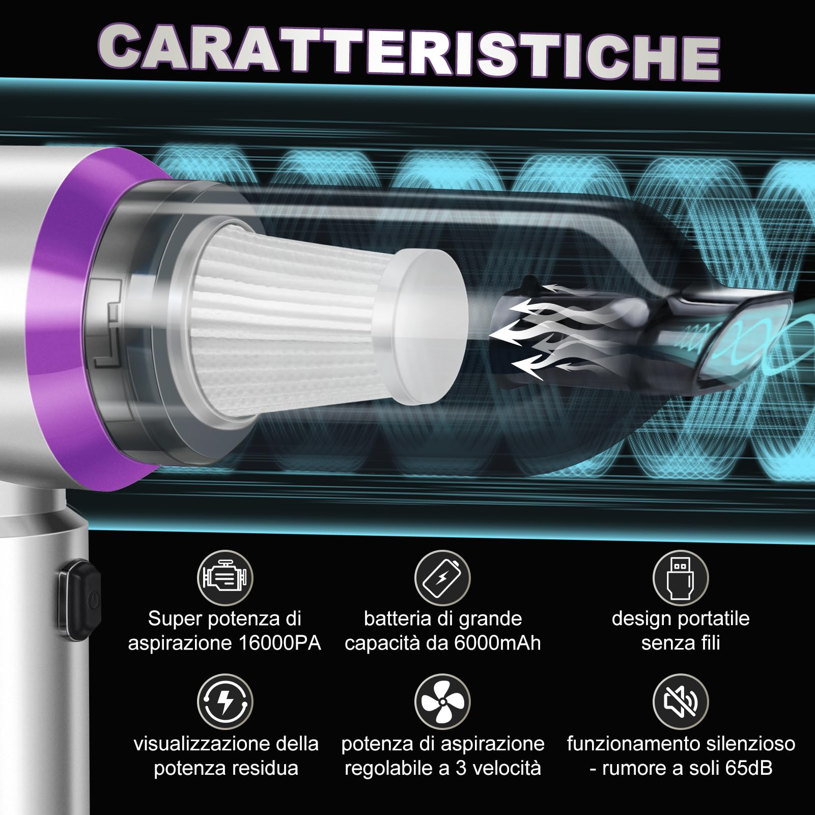 JSUDQR Handstaubsauger Kabellos - 6000Pa Saugkraft 4-in-1 Auto Sauger