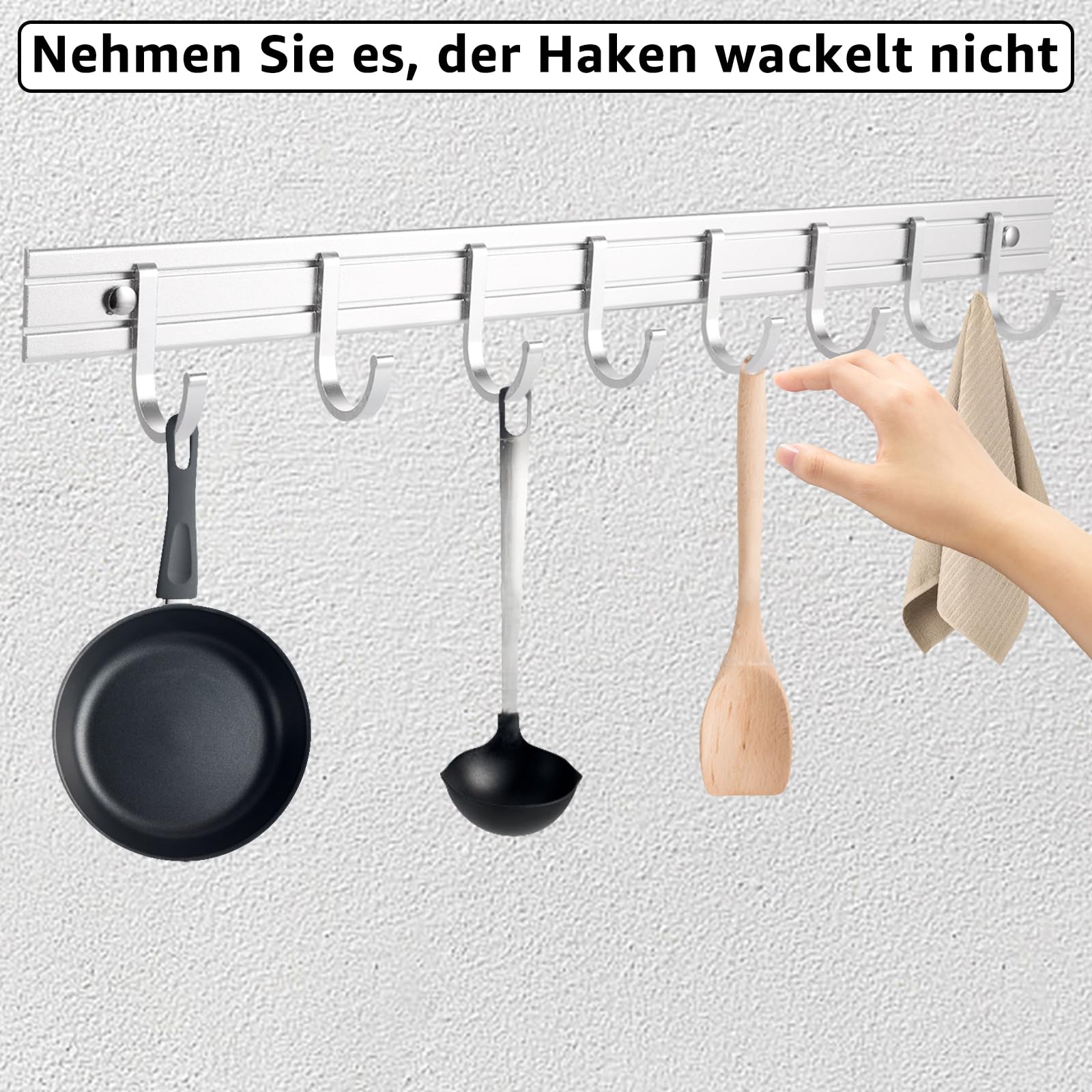 Ordnung ohne Bohrlöcher! Diese geniale Hakenleiste mit Saugnapf-Technologie montierst du in nur 10 Sekunden - ganz ohne Werkzeuge oder lästiges Bohren. Die 40cm lange Aluminium-Schiene hat 8 bewegliche Haken die du flexibel anordnen kannst. Und das Beste: Sie hält bis zu 20kg! Perfekt für Küchenutensilien, Handtücher oder Bad-Accessoires. Die TEP-Saugnäpfe sind feuchtigkeitsbeständig, hitzebeständig und ölabweisend - ideal für Küche und Bad. Einfach auf glatte Oberflächen wie Glas, Marmor oder Fliesen drücken, drehen und fertig! Wenn du umziehst oder umdekorieren willst, einfach abmachen - keine Spuren bleiben zurück. Die Haken kannst du jederzeit abnehmen und reinigen. Endlich praktische Aufbewahrung ohne Commitment! Perfekt für Mieter oder alle die ihre Wände schonen wollen.