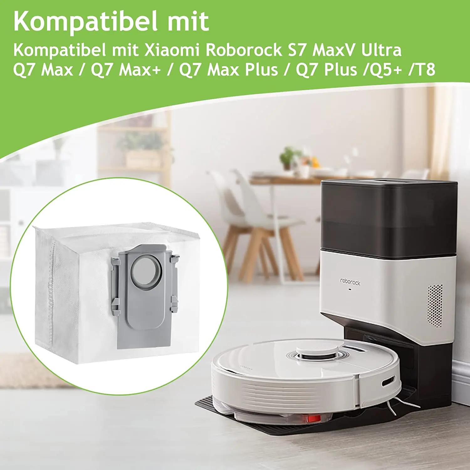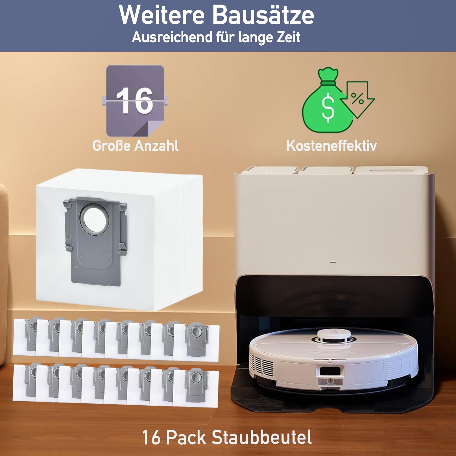 Nie wieder Staub beim Wechseln! Diese 16 Ersatzbeutel passen perfekt für Roborock S8 Pro Ultra, S8+, S7 MaxV Ultra, Q7+ und viele mehr! Jeder Beutel hat 3L Fassungsvolumen - hält ewig! 4-Lagen-Gewebe sorgt für absolute Dichtheit - kein Staub entweicht mehr! Einfach zu installieren - kein Werkzeug nötig! Mit Push-Pull-Griff - du berührst den Staub nicht mal! Perfekt für Allergiker - der Staub bleibt da, wo er hingehört. Spart Zeit und Nerven - wechseln war noch nie so einfach! Deutsche Qualität zum fairen Preis - dein Saugroboter wird's dir danken!