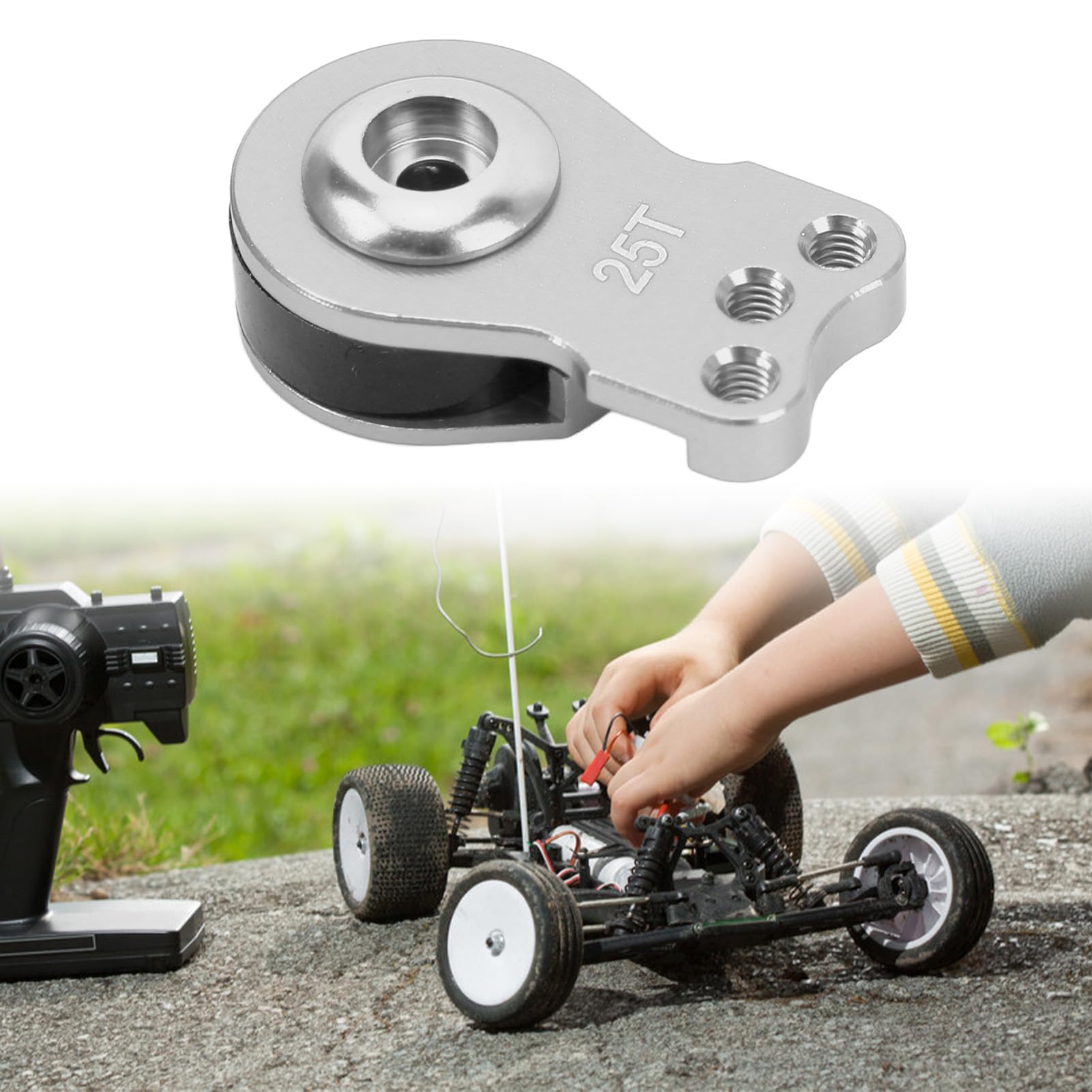 Mehr Präzision für dein RC-Car! Dieser leichte Servo-Saver aus Aluminiumlegierung verbessert die Lenkgenauigkeit deines 1/10 Modellautos erheblich. Mit 25 Zähnen passt er perfekt für die meisten Standard-Servos. Das spezielle Design schützt nicht nur die Servogetriebe vor Stößen, sondern sorgt auch für eine deutlich präzisere Lenkung. Durch das leichte Aluminium-Material wird dein Auto nicht zusätzlich belastet. Die einfache Installation macht den Einbau zum Kinderspiel - keine komplizierten Werkzeuge nötig! Im Lieferumfang sind 3 Servo Saver, 2 Unterlegscheiben und 2 Schrauben enthalten. Ob beim Rennen oder beim freien Fahren - mit diesem hochwertigen Teil holst du das Maximum aus deinem RC-Car heraus. Für mehr Kontrolle und bessere Performance auf der Strecke!