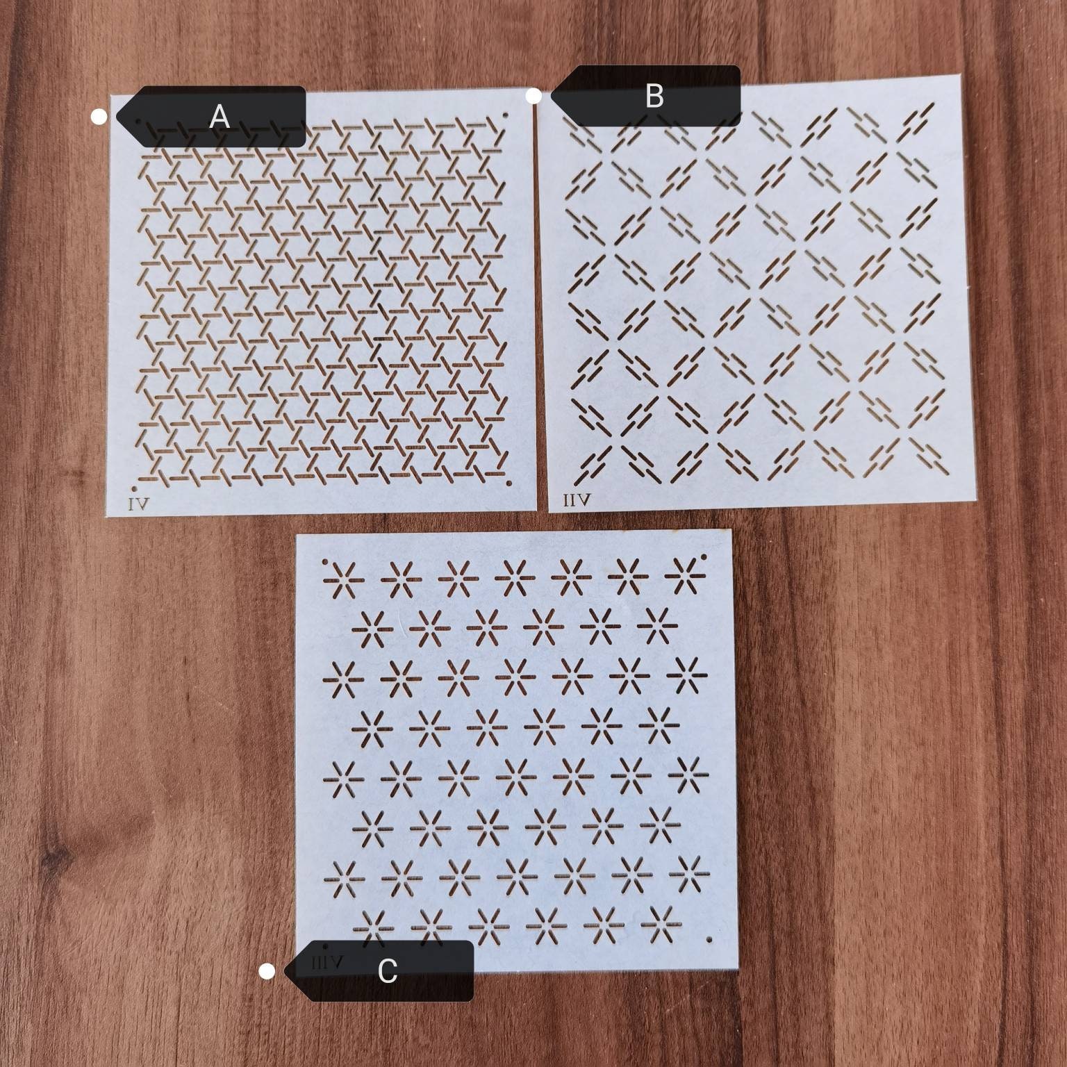 Boah, diese Sashiko-Schablonen bringen japanische Tradition in deine Stickprojekte! 7 verschiedene Muster auf Acryl-Platten, je 20x10cm groß und 2mm dick. Lasergraviert für präzise Ergebnisse.