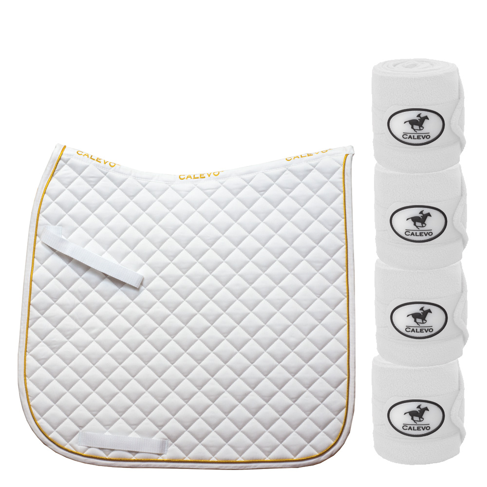 Stylish und funktional - die CALEVO Schabracke im beliebten Diamond-Stepp Design! Mit feiner, farblich abgesetzter Biese oder eleganter Silberkordel sieht sie einfach klasse aus. Die stabile Schaumeinlage sorgt für optimalen Sitz und Komfort für dein Pferd. Die praktischen Schlaufen lassen sich per Klett öffnen - super einfach anzubringen. Aus 65% Polyester und 35% Baumwolle - robust und pflegeleicht. Erhältlich in verschiedenen Größen: DR für Dressur, VS für Springen/Vielseitigkeit, sowie PD und PVS für Ponys. Ob Turnier oder tägliches Training - diese Schabracke macht immer eine gute Figur. Dein Pferd wird sich wohlfühlen und du hast lange Freude an der hochwertigen Verarbeitung. Ein Must-Have für jeden Reiter!