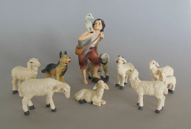 11-teilige Krippenfiguren Schafe & Hoftiere - Handbemalt Aus Polyresin 7-9cm
