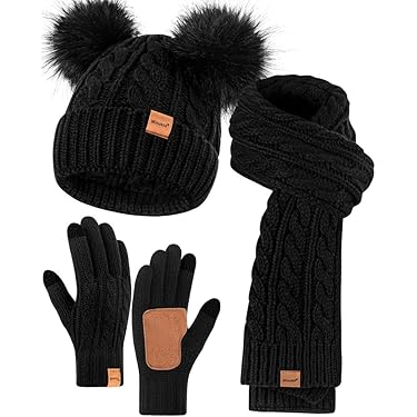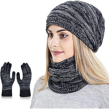 OWFKAY Damen Schal Mit Kapuze - 3-in-1 Winter-Set Mit Handschuhtaschen, Karomuster