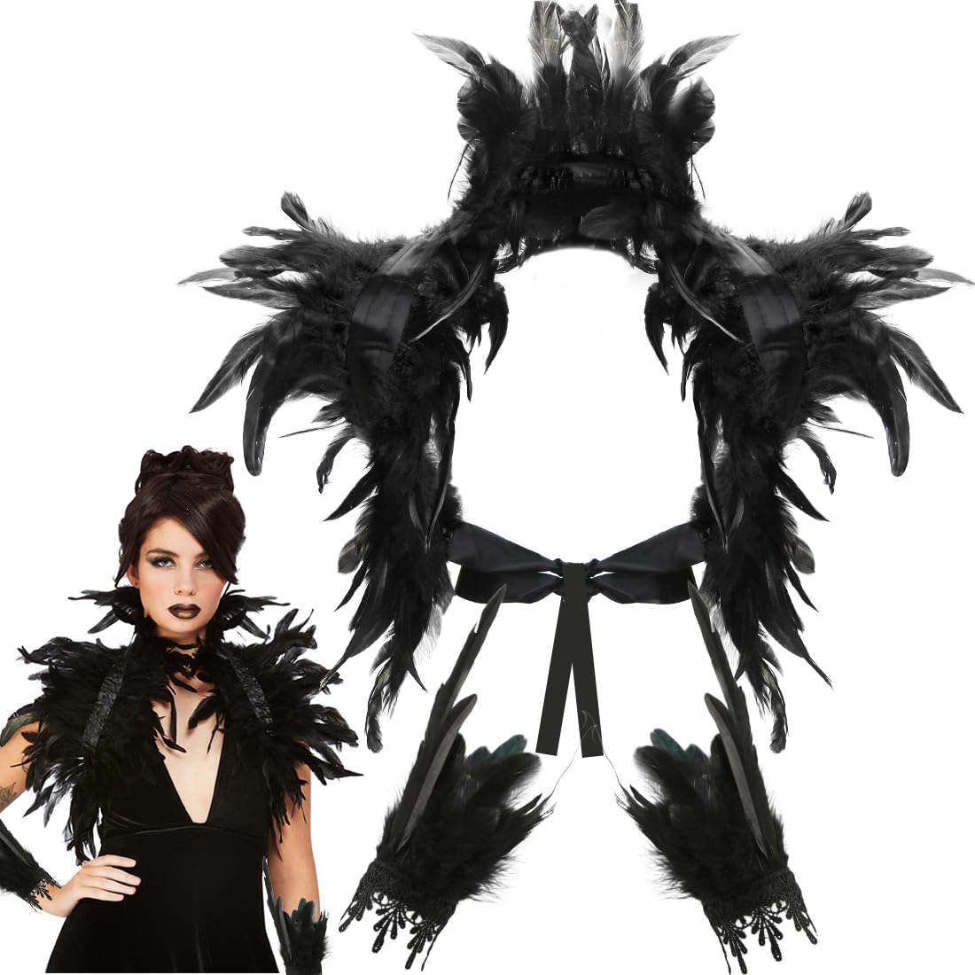 GIEEU Gothic Federumhang - Schal Mit Kragen Für Halloween & Cosplay