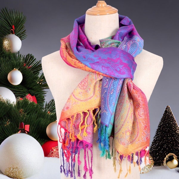 Damen Pashmina Schal Mit Regenbogen-Paisley - Großer Vintage Schal