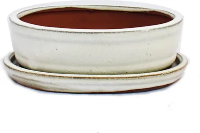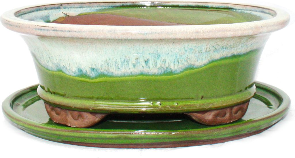 Exotenherz Bonsai-Schale Oliv-Braun Mit Untersetzer - Haitang-Form Für Zimmerbonsai