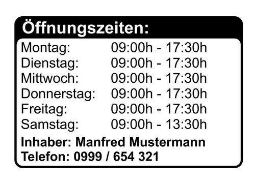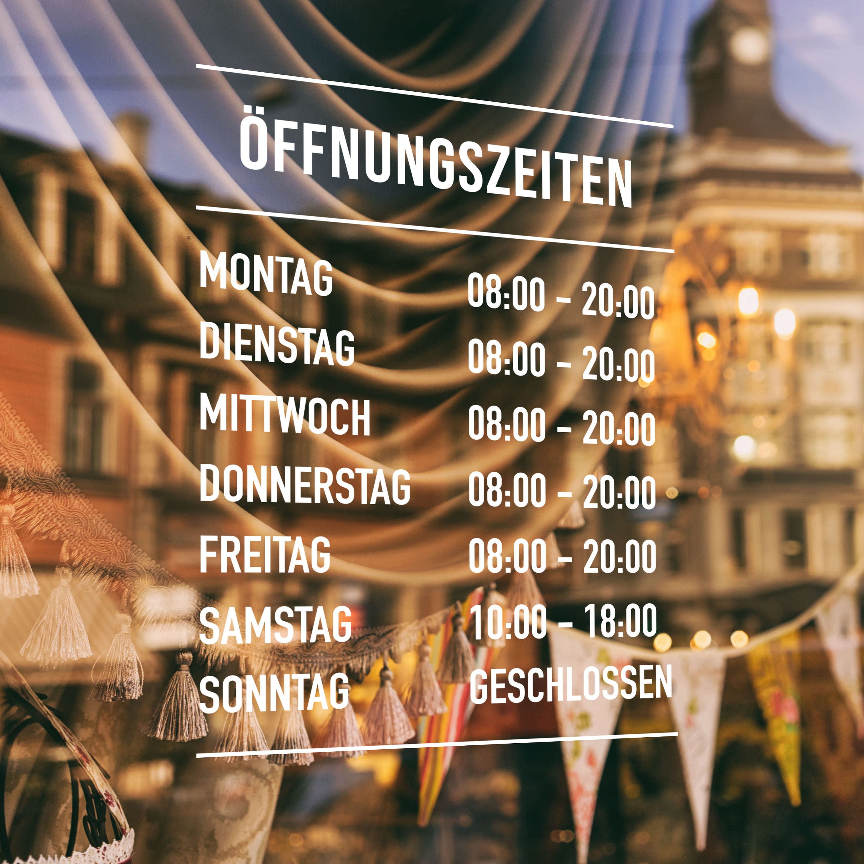 Personalisiert Öffnungszeiten Aufkleber - Schaufenster Sticker Aus Vinyl