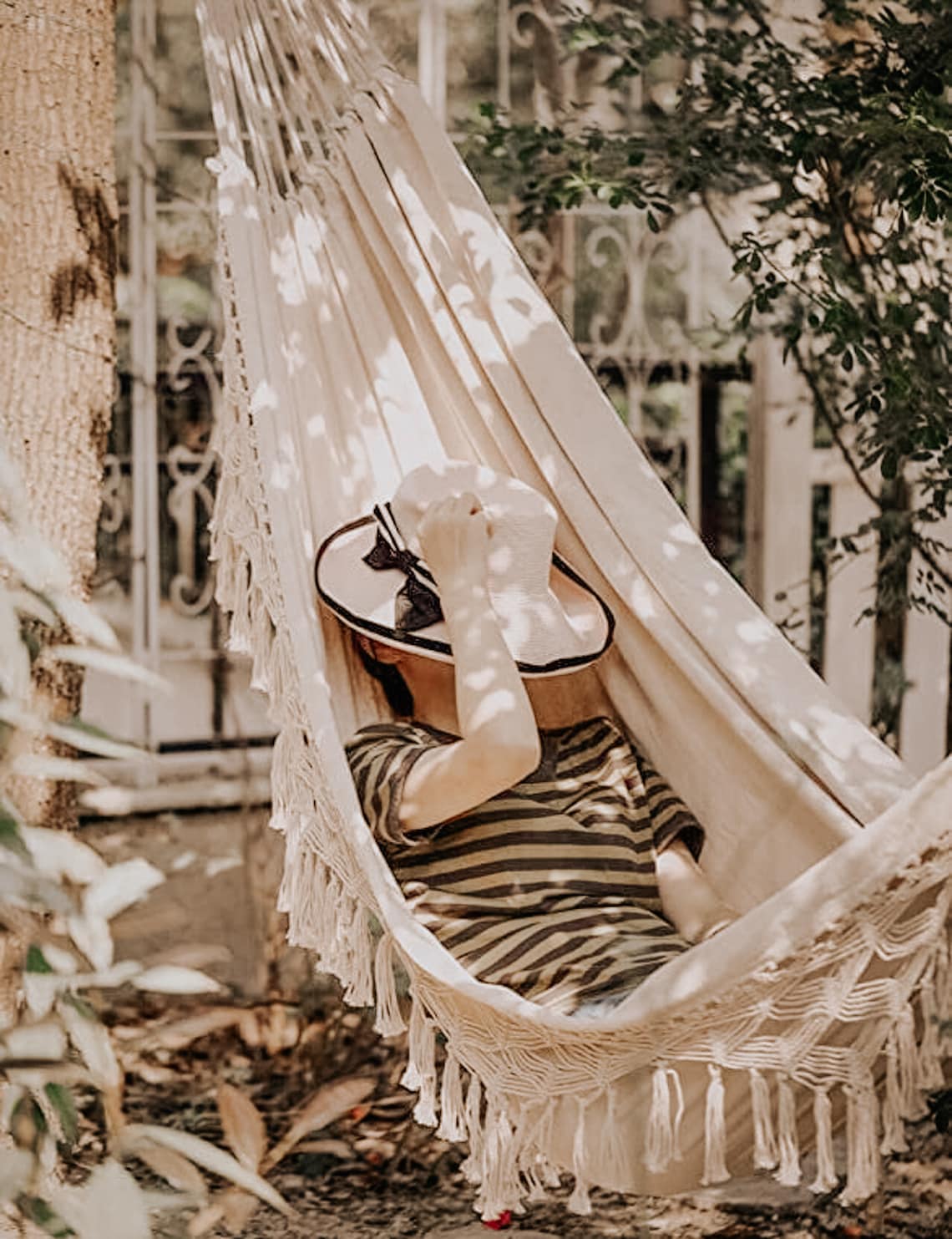 Fachmännisch aus hochwertigem Baumwollseil und einem stabilen Metallrahmen gefertigt, ist dieser Hängesessel nicht nur super bequem, sondern auch ein echter Hingucker. Der Boho-Charme passt perfekt zu modernen wie auch zu ländlichen Einrichtungsstilen.