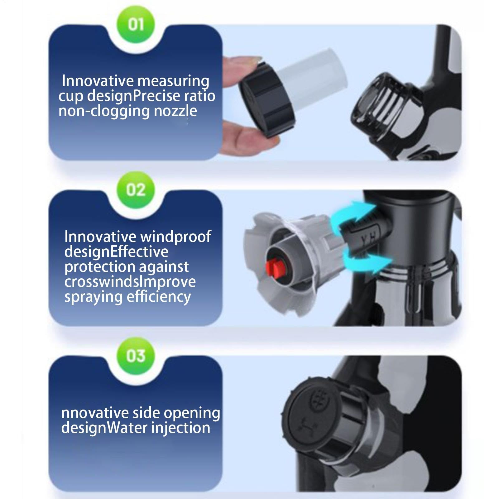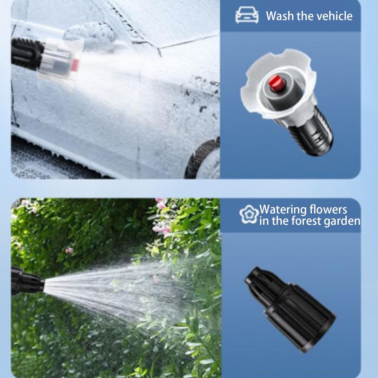Die HDPE-Konstruktion ist ultra-stabil und hält auch bei regelmäßiger Nutzung problemlos stand. Mit zwei verschiedenen Sprühköpfen - einer für die Autowäsche, einer für die Gartenbewässerung. So hast du ein 2-in-1 Gerät für Haus und Auto.