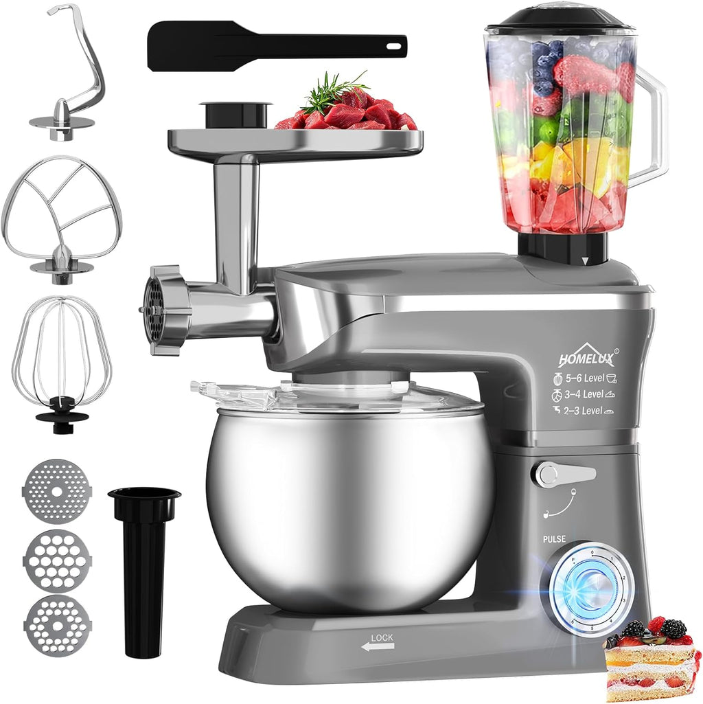 Kochen wie ein Profi: Die Scheffler Küchenmaschine mit 1300W Motor und 5-Liter-Edelstahlschüssel macht dir das Leben in der Küche richtig leicht. Egal ob du Brot backst, Kekse machst oder Sahne schlägst – mit 6 Geschwindigkeitsstufen plus Pulser-Funktion hast du alles im Griff. Der neigbare Kopf ist superpraktisch, um Zutaten nachzufüllen oder die Schüssel zu reinigen. Das Zubehör in Lebensmittelqualität – Knethaken, Rührbesen, Schneebesen und Schaber – ist spülmaschinenfest und für alle Teigarten geeignet. Rutschfeste Füße sorgen für Stabilität, und die blaue LED-Anzeige zeigt dir immer an, wenn die Maschine läuft. Besonders clever: Der Überhitzungsschutz und die automatische Abschaltung beim Hochklappen des Kopfes. So kannst du auch mal länger mixen, ohne dir Sorgen zu machen. Perfekt für Familien, Hobbybäcker und alle, die gerne leckere Dinge selbst machen. Ein richtig gutes Küchengerät, das lange hält und super Ergebnisse liefert!