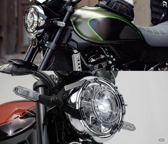 Dieser stylische Scheinwerfergrill aus Aluminium schützt deine Motorrad-Lampe vor Steinschlag und Kratzern! In Gold erhältlich, mit 16cm Durchmesser - perfekt für Royal Enfield Himalayan, Interceptor 650 und andere Modelle. Das robuste Metallgitter lässt genug Licht durch, schützt aber zuverlässig vor Beschädigungen. Im coolen Vintage-Design, das dein Bike sofort aufwertet. Super einfach zu montieren - passt direkt an die originale Scheinwerferhalterung. Sieht nicht nur gut aus, sondern ist auch praktisch. Für mehr Sicherheit und Style auf der Straße!