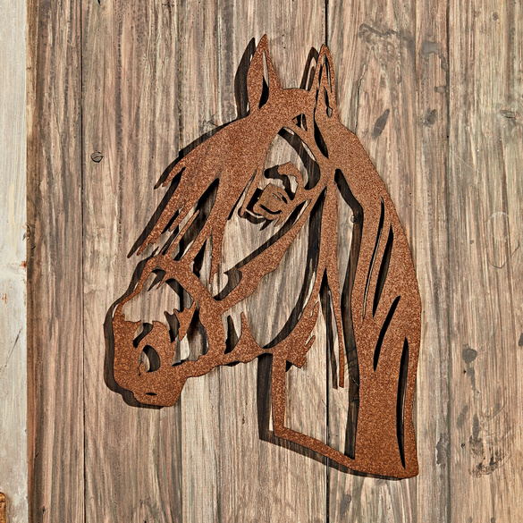 Der-Porzellan-Laden Scherenschnitt Pferdekopf Wandbild - Edelrost Metall 60x40 Cm
