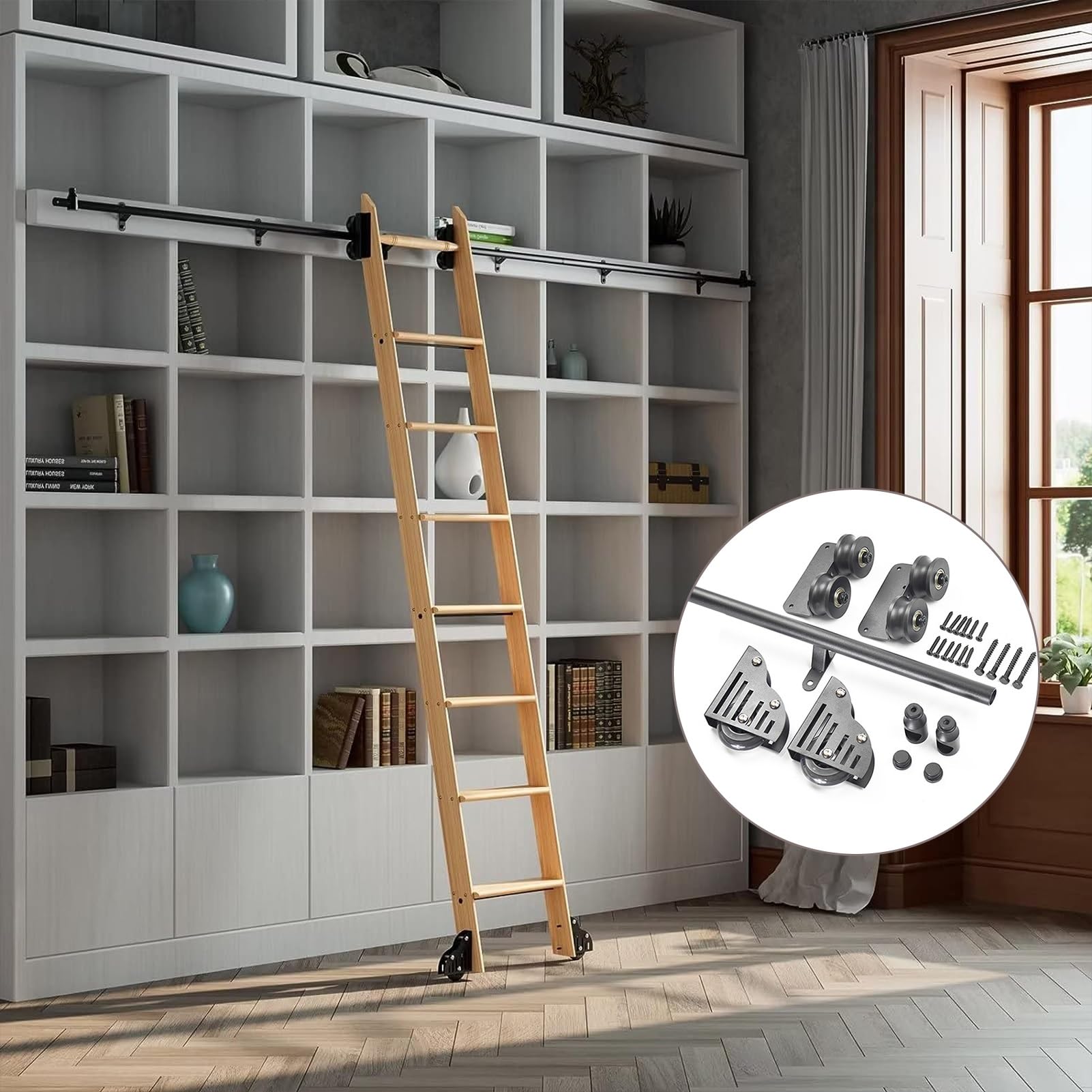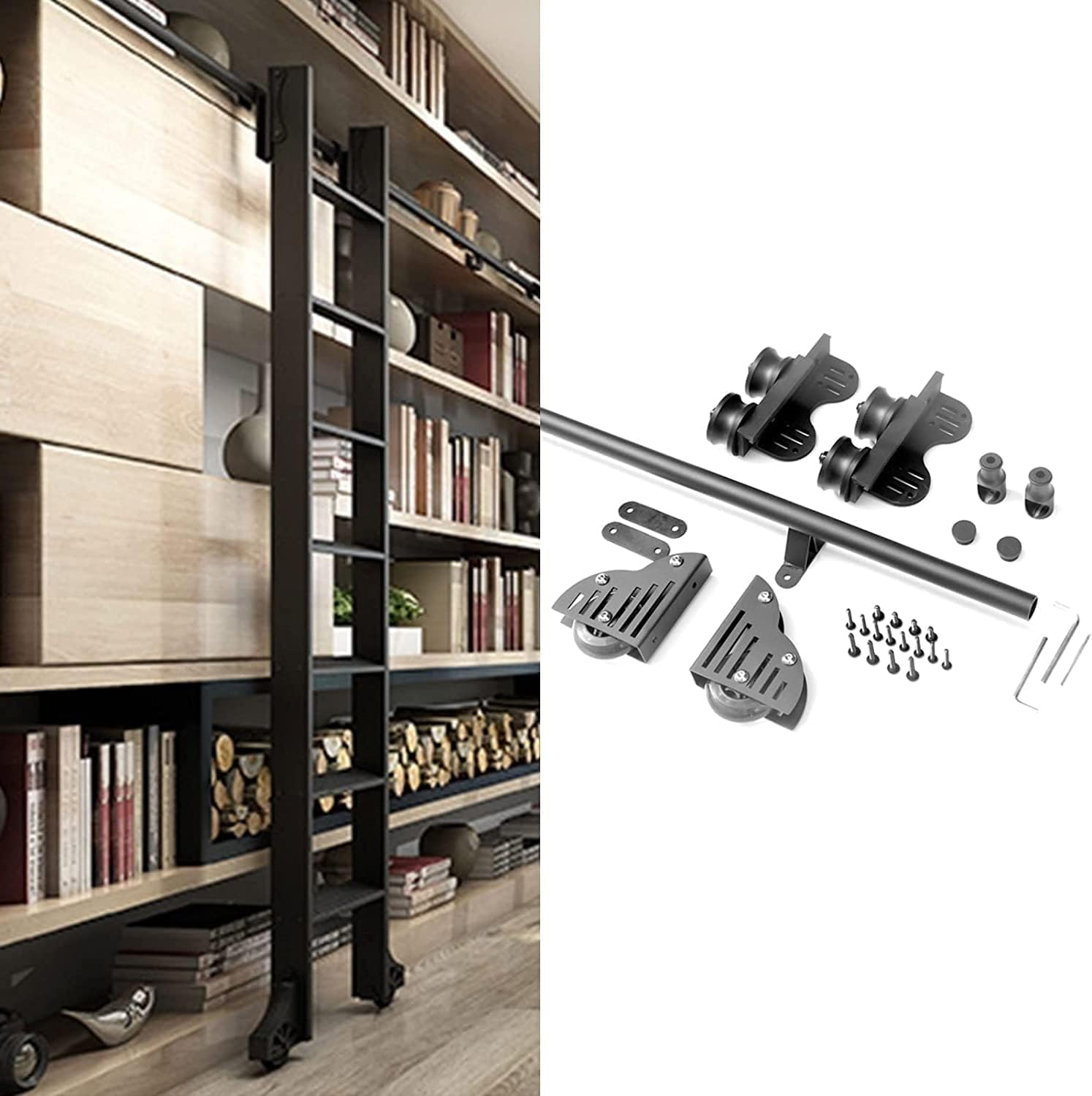 Schiebe-Bibliotheksleiter Schienenset - Einziehbare Rollleiter Schienen - Für Rundrohr 3,3 Bis 20 Fuß