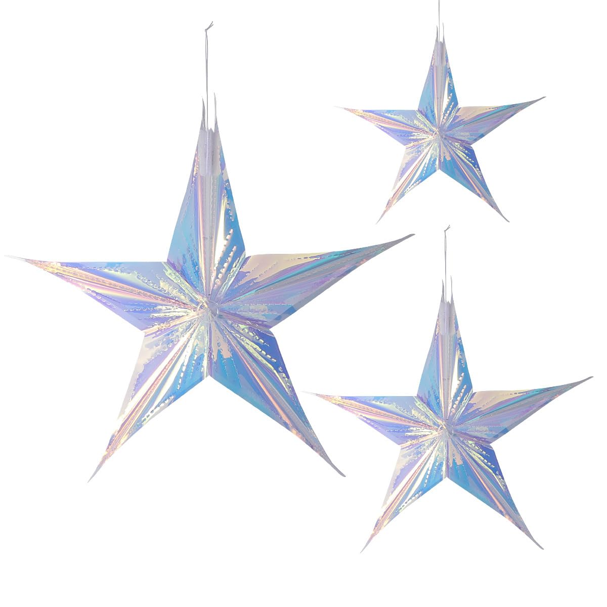Vaguelly 3-tlg. Schillernde Stern-Dekoration - 12/16/24 Zoll, Holografisch, Für Party & Events