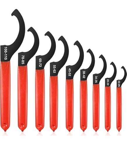 Professionelle Werkzeuge für anspruchsvolle Arbeiten! Dieses 6-teilige Gewinde-Schlüssel-Set in Rot und Schwarz ist aus hochwertigem Kohlenstoffstahl gefertigt - extrem hart und langlebig. Die C-Form ermöglicht einfaches Arbeiten an schwer zugänglichen Stellen. Mit gummierten Griffen für rutschfesten Halt und bessere Kraftübertragung. Ideal für Spulenstoßdämpfer, Maschinenbau oder Fahrzeugreparaturen. Wird mit praktischer Aufbewahrungstasche geliefert - alles ordentlich verstaut und immer griffbereit. Von APU13 bis C32 in verschiedenen Größen für unterschiedliche Anwendungen. Ein Muss für jede Werkstatt!