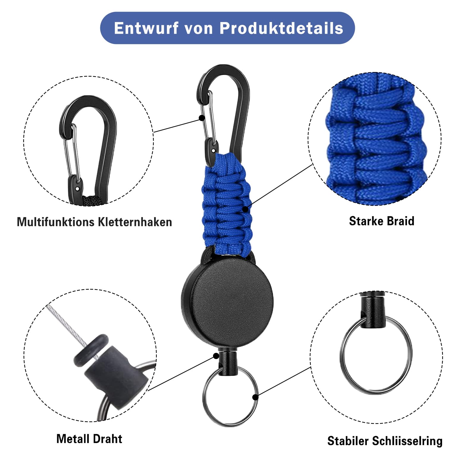 2x Ausziehbarer Schlüsselanhänger - 68cm Nylonseil Mit Karabiner