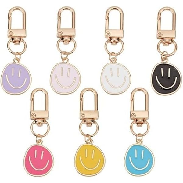 Diese süßen Smiley-Schlüsselanhänger bringen gute Laune in dein Leben! Das Set mit 30 bunten Anhängern in Gelb, Blau, Lila, Schwarz, Weiß und Pink ist perfekt für alle, die es fröhlich mögen. Aus hochwertiger Metall-Legierung gefertigt, rostfrei und langlebig. Mit 19x59 mm genau die richtige Größe für Schlüsselbund, Handtasche oder Rucksack. Super als Geschenk für Freunde, Kollegen oder dich selbst - zu Geburtstag, Weihnachten oder einfach so! Die niedlichen Smiley-Gesichter sorgen immer für ein Lächeln im Alltag. Einfach aussuchen, anhängen und losstrahlen!