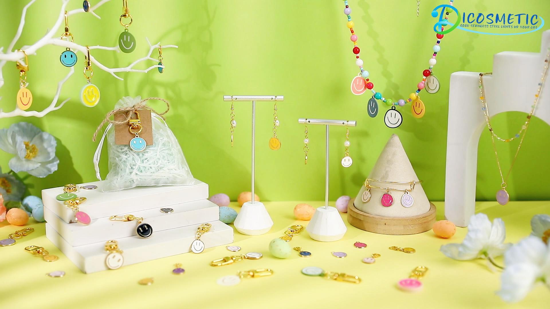30 Stück Smiley Schlüsselanhänger - Bunte Emaille Anhänger, Metall Schlüsselring, Süße Geschenkidee