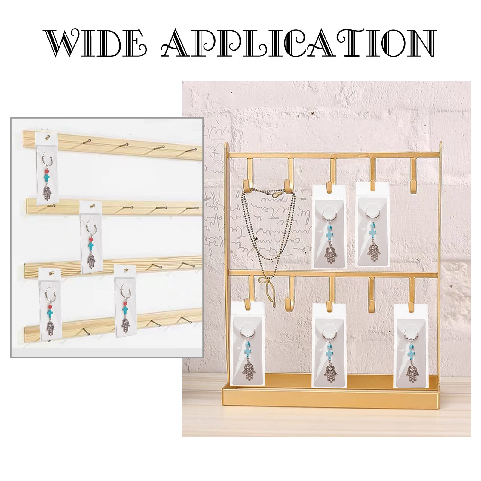 Perfekt für deine Schmuckpräsentation! Dieses Set mit 120 weißen Display-Karten (5x12cm) und versiegelbaren Beuteln ist ideal für Händler und Bastler. Die Karten aus stabilem Karton haben ein 5mm Loch zum Aufhängen von Schlüsselanhängern. Die transparenten Beutel schützen deine Ware vor Staub und Verschmutzung. Super für die Präsentation von Schmuck, Schlüsselanhängern, Armbändern und mehr. Einfach den Schmuck aufhängen, in den Beutel stecken und verschließen - fertig ist die professionelle Präsentation! Perfekt für Märkte, Online-Shops oder zur Lagerorganisation.