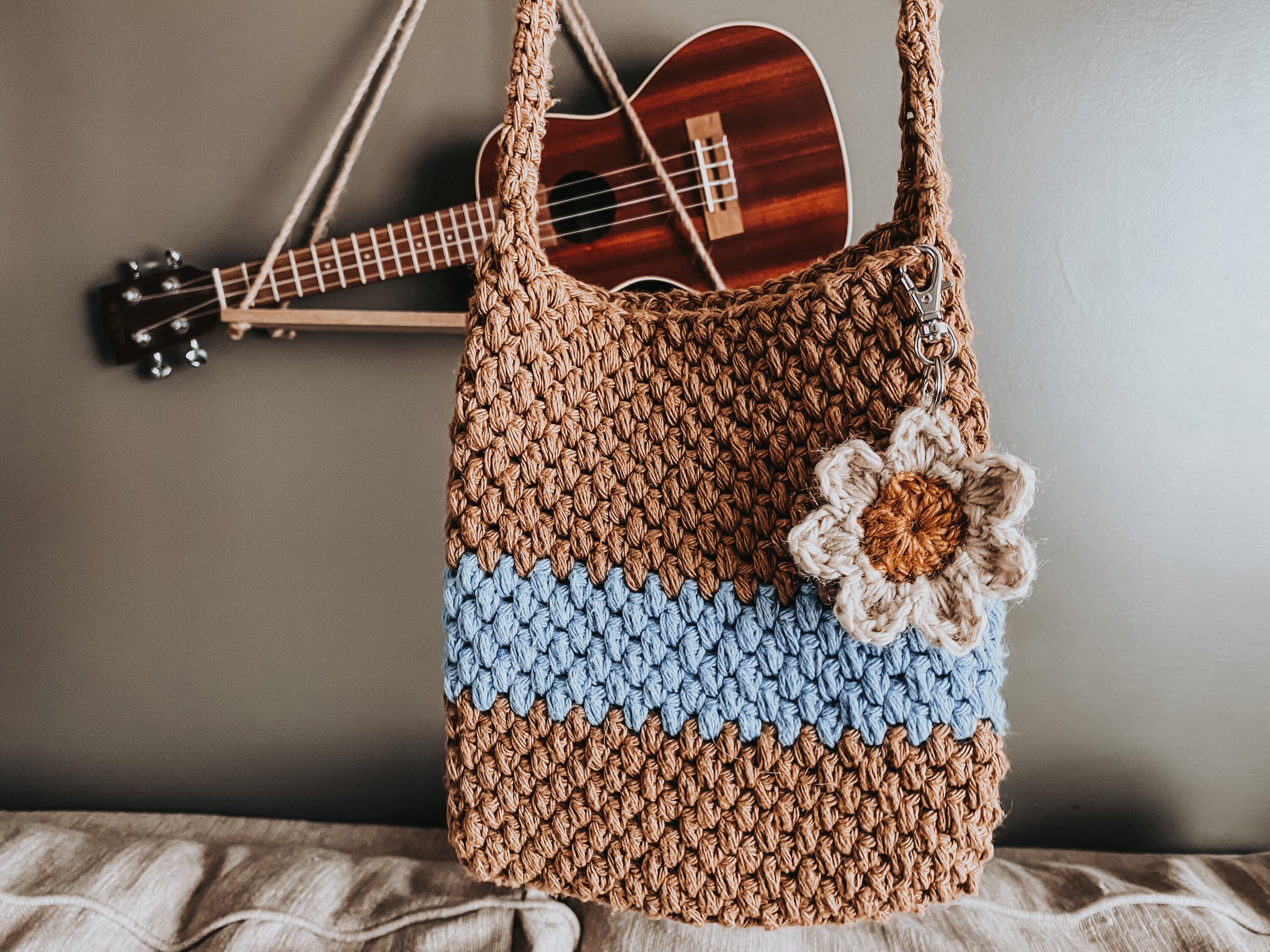 Keboyoe 8er Set Gehäkelte Blumen Schlüsselanhänger - Süße Gänseblümchen Deko Für Schlüssel & Taschen