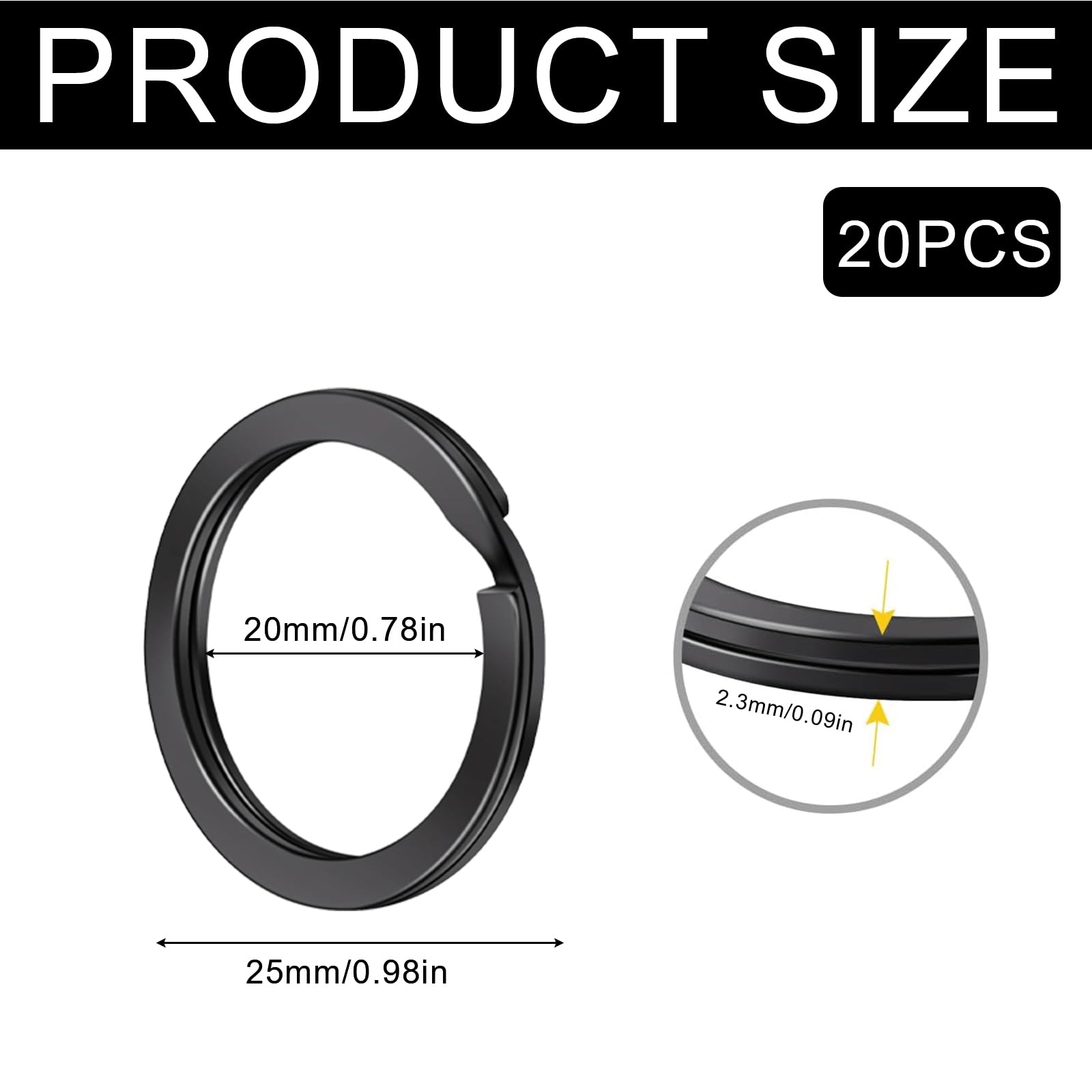 LEMLIN Schlüsselringe 20 Stück - Edelstahl Keyrings Schwarz, 25mm