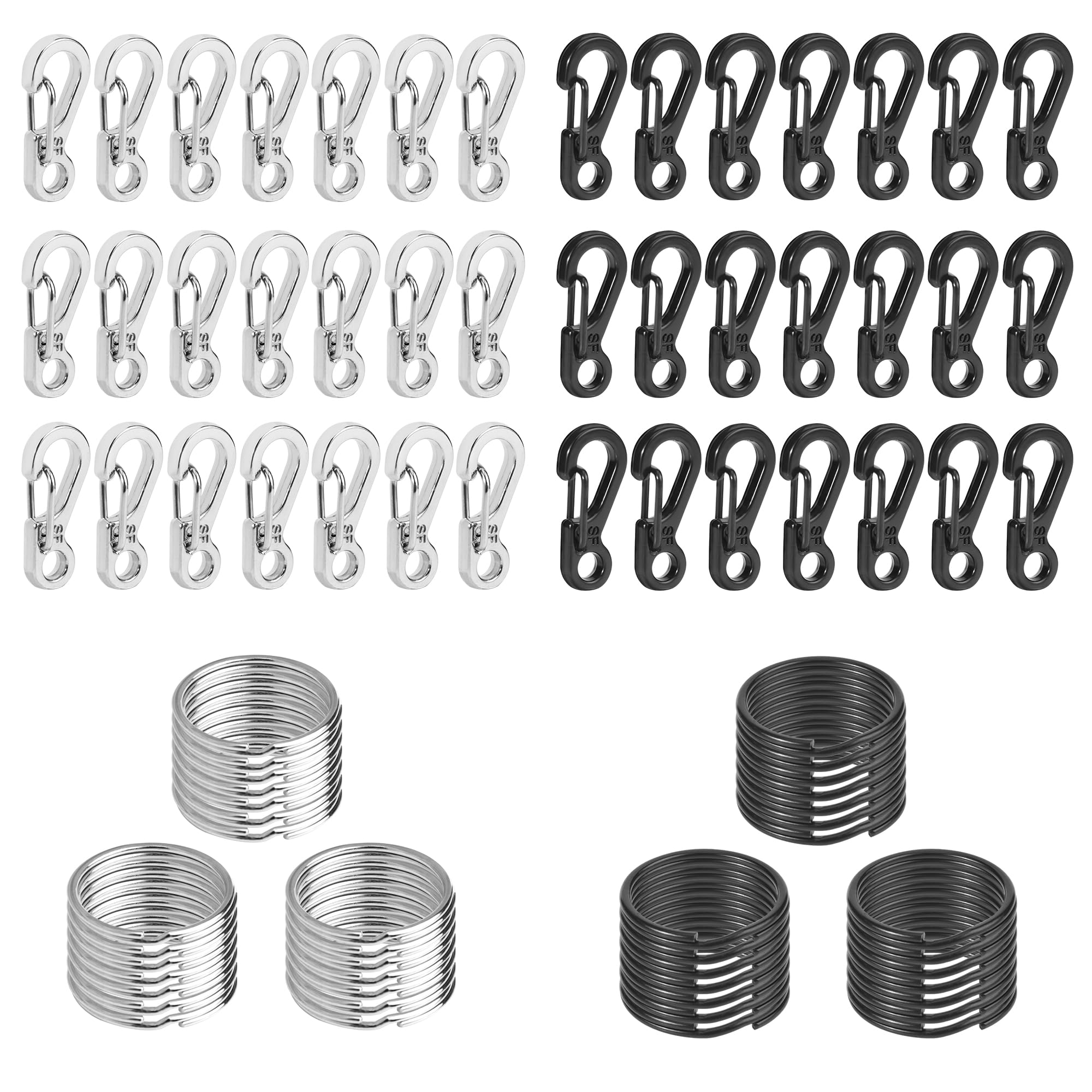 84er Set Mini Karabiner & Schlüsselringe - 42 Komplettsets Schwarz/Silber Für Outdoor