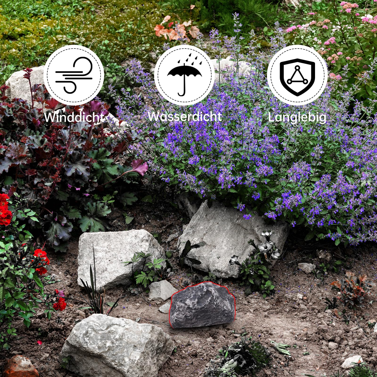 Einfach im Garten, Blumenbeet oder auf der Terrasse platzieren - der Stein fügt sich perfekt in die Umgebung ein. Niemand wird ahnen, dass hier Schlüssel versteckt sind!