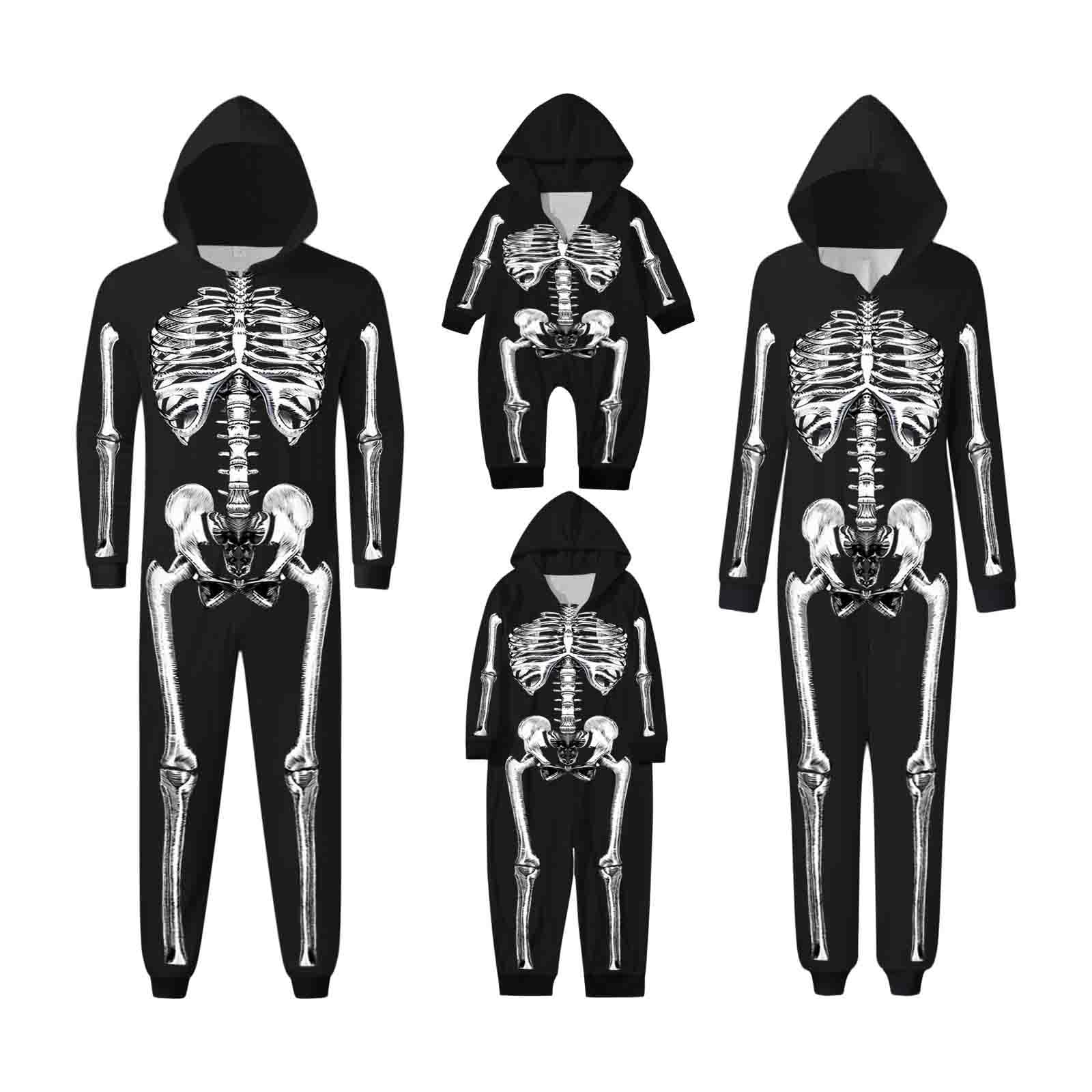 WERNZATT Skelett Schlafanzug Family Set - Langarm Jumpsuit Mit Kapuze