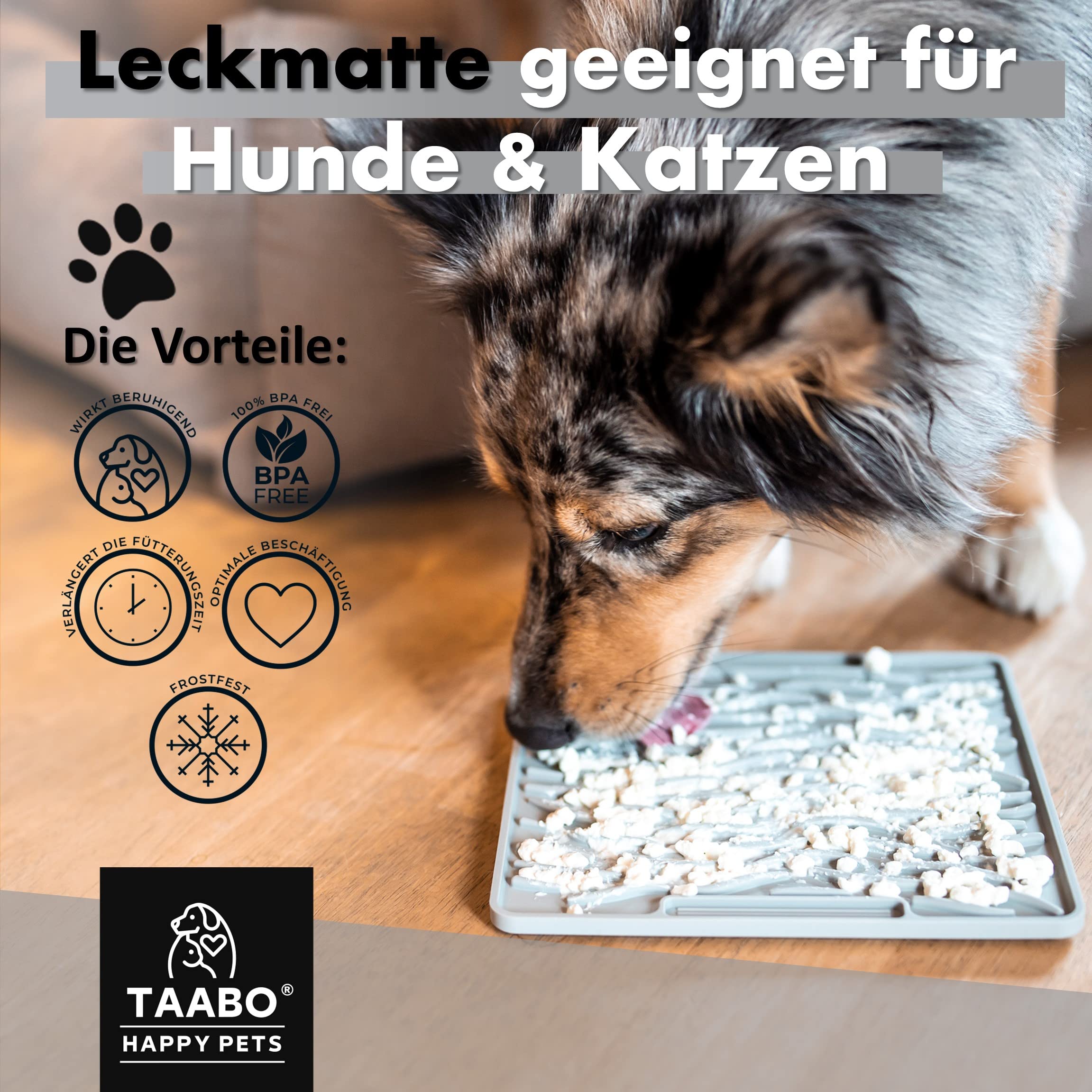 Diese Schleckmatte macht deinen Hund glücklich und beschäftigt! Mit 2 verschiedenen Oberflächenstrukturen für abwechslungsreichen Schleckspaß. Aus 100% lebensmittelechtem Silikon - absolut sicher und spülmaschinenfest. Starke Saugnäpfe halten die Matte sicher am Platz. Perfekt als Anti-Schlingnapf, für Leckerlis oder zum Beschäftigen. Fördert die Speichelbildung und pflegt Zahnfleisch. Auch für Katzen geeignet! Einfach zu reinigen und frostfest für Eis-Spaß im Sommer. Inklusive Spachtel und Ebook mit weiteren Spielideen. Mach die Fütterung zum Erlebnis - dein Hund wird's lieben!