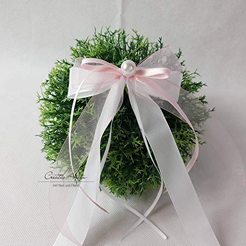 20 Stück Hochzeits Schleifen Auto Deko | Weiß & Rosa Organza Mit Herzen