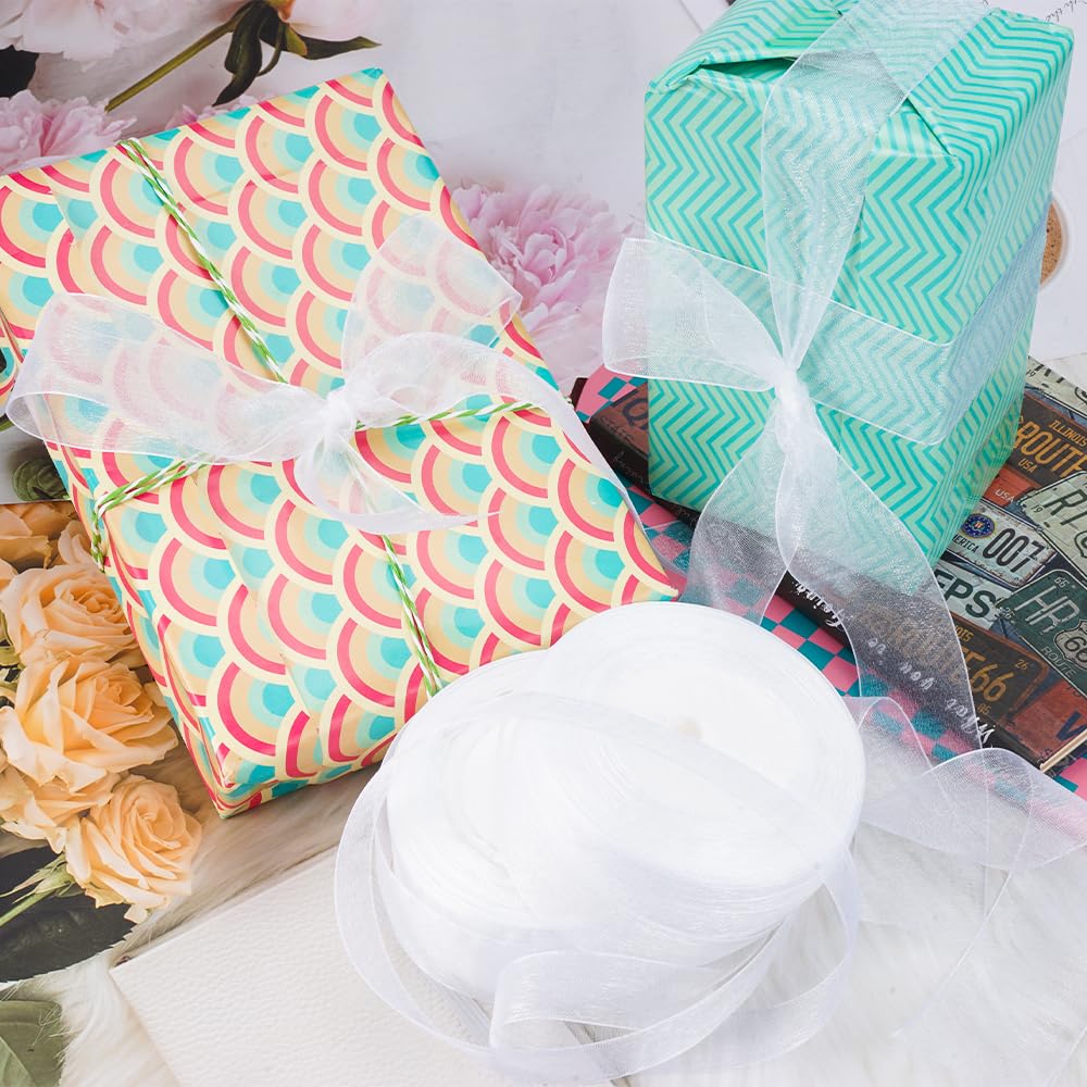 2-tlg. Schleifenband Set - Organza & Satin Geschenkbänder 67m Weiß & Transparent