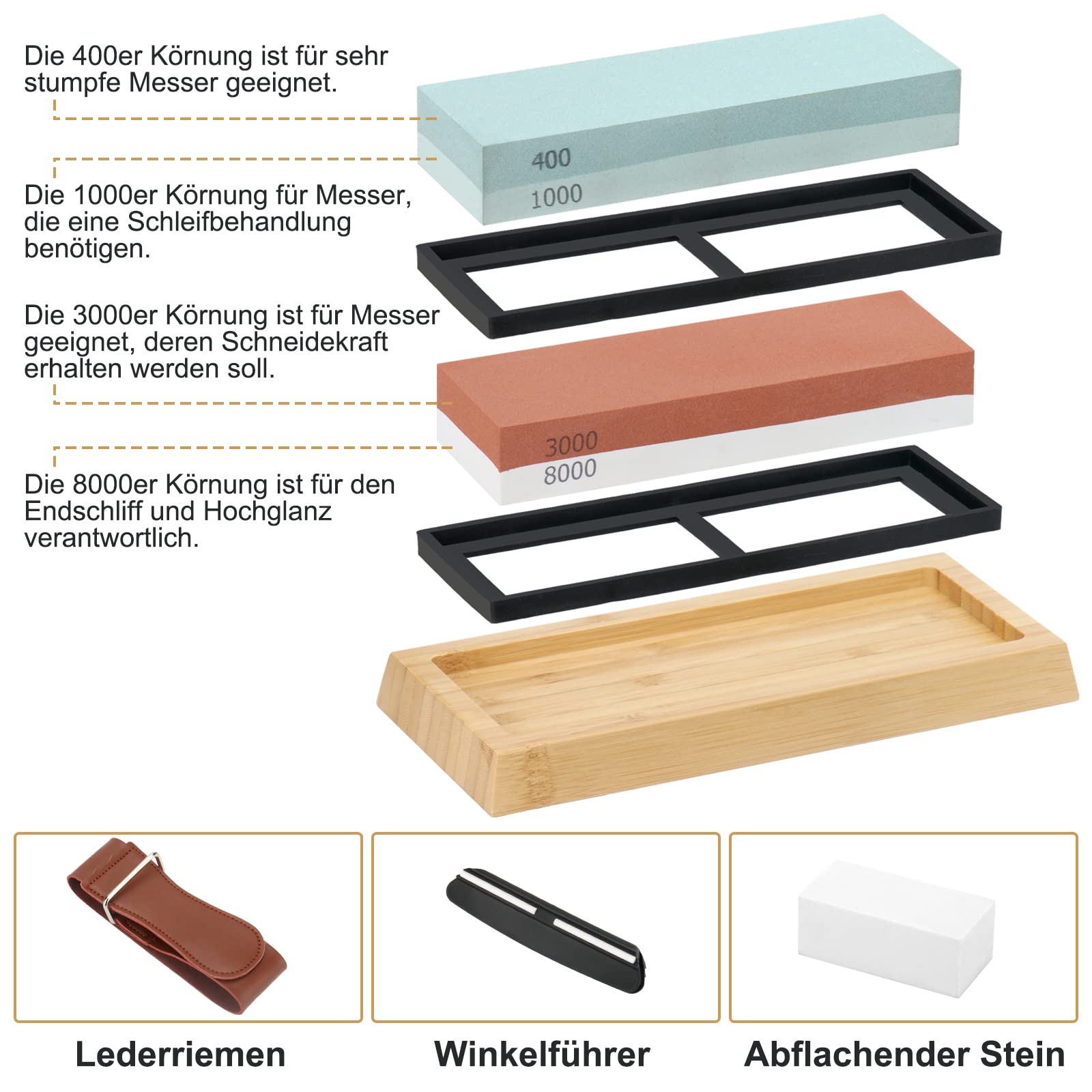 Schleifstein Set 4-in-1 - Doppelseitig 400/1000 & 3000/8000 Grit Mit Zubehör