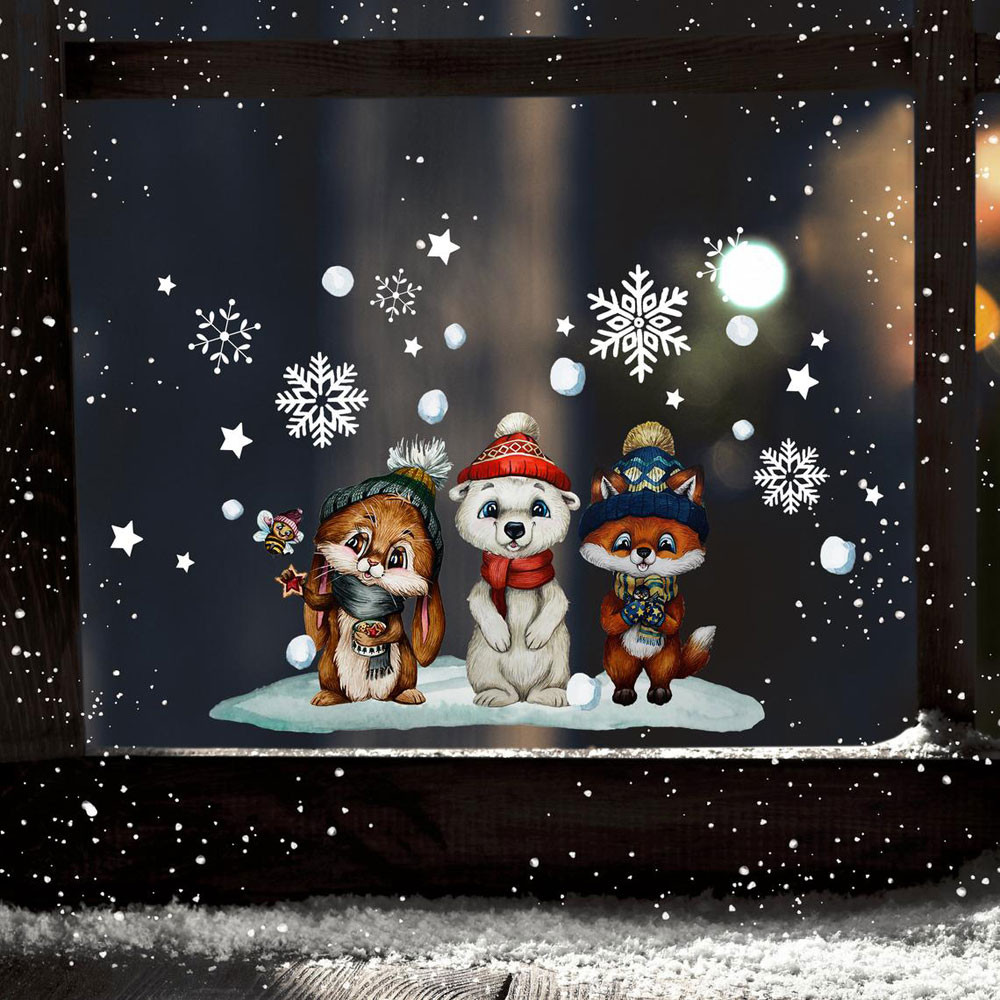 Fensterbild Weihnachten Igel Mit Schlitten - Wiederverwendbar Winter Deko Für Kinder