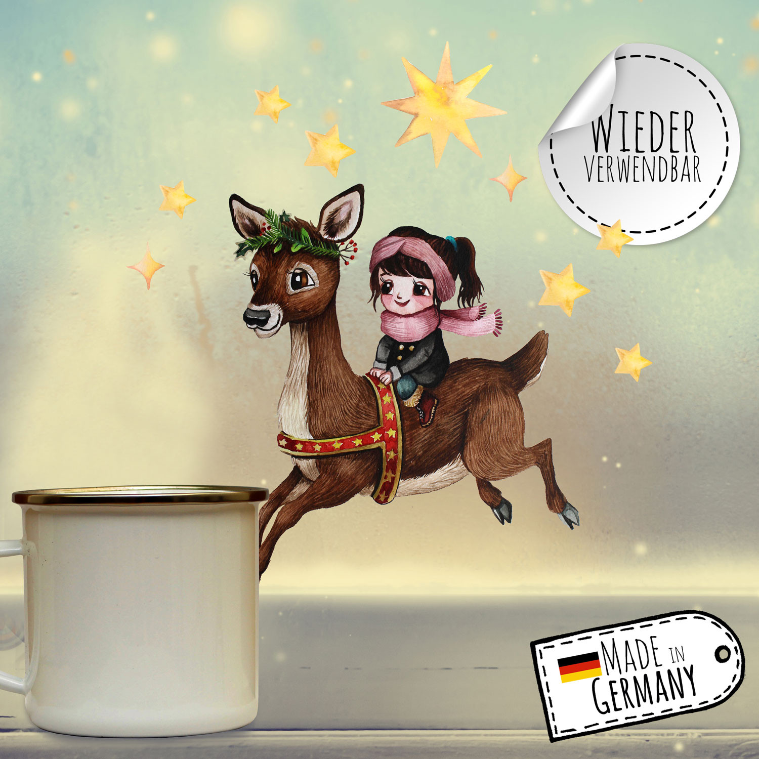 Hergestellt in Deutschland aus hochwertiger, seidenmatter Folie. Wiederverwendbar und rückstandslos entfernbar - kein lästiges Klebereste-Entfernen mehr! Die Maße betragen ca. 17cm breit und 34cm hoch (Igel mit Schlitten: 13x23cm).