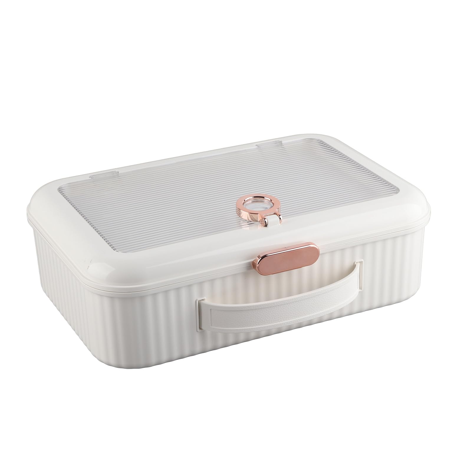 Mit Tragegriff - super praktisch wenn du mal umziehst oder die Box woanders hinbringen musst. Sie wiegt 2200 g - stabil aber nicht zu schwer.