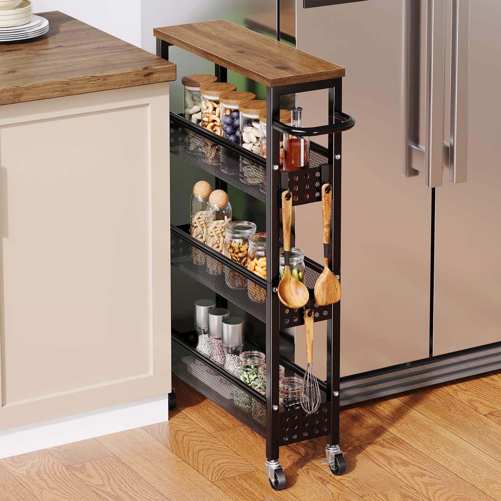 Schmaler Aufbewahrungswagen Mit Rollen - Küchenwagen In Sonoma-Eiche Optik