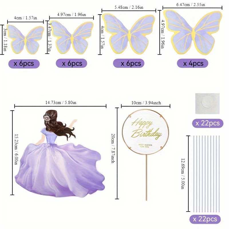 Schmetterling Torten-Deko Set - 47 Teile Mit Kugeln Für Geburtstage & Feiern