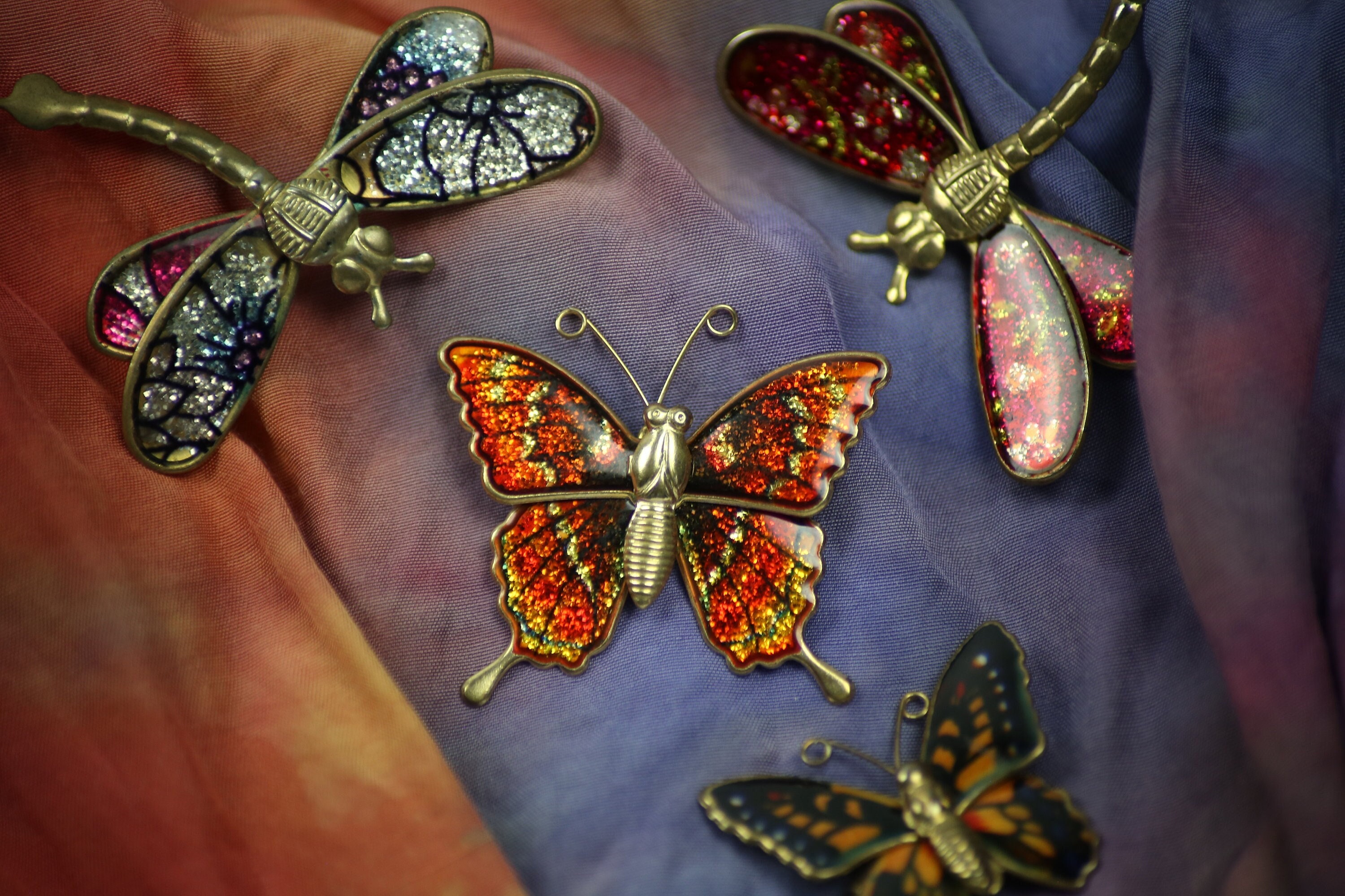 6 Stück Strass Schmetterlings Brosche - Gold & Silber 30x41mm