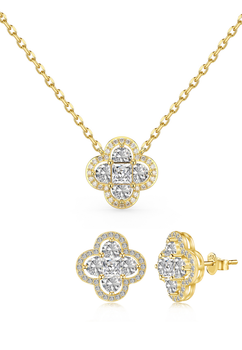 5-Blatt Kleeblatt Schmuck Set - 18K Vergoldet Halskette Armband Ohrringe