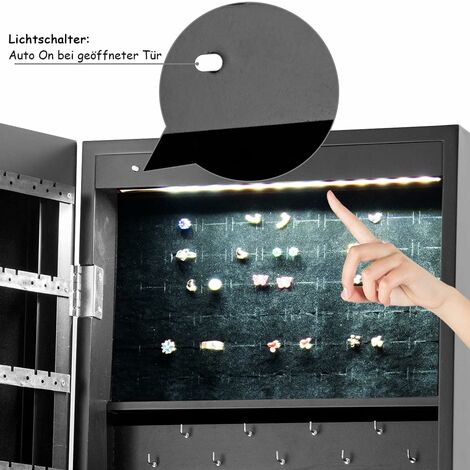 Schmuckschrank Mit LED Beleuchtung - Schmuckregal Mit Spiegel Und Schloss