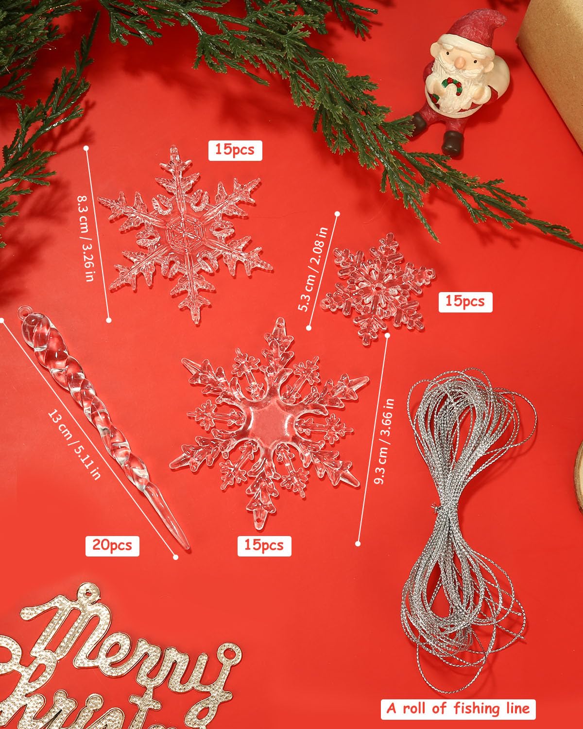 50 Stück Weihnachts Schneeflocken Deko - Acryl Anhänger Für Christbaum & Fenster