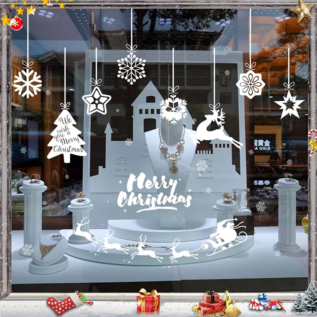 Weihnachts Fensteraufkleber - PVC Schneeflocken Deko Selbstklebend & Wiederverwendbar