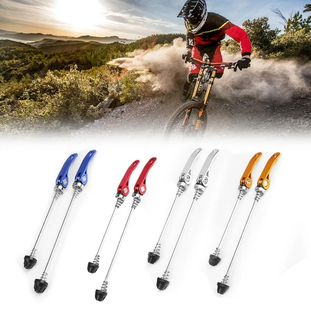 Mach dein Fahrrad fit mit diesen praktischen Schnellspannachsen! Das Paar enthält je eine Vorderachse (210mm) und eine Hinterachse (245mm) - perfekt für Mountainbikes und Rennräder. Aus leichter Aluminiumlegierung mit robustem Stahlkern für maximale Festigkeit. Der glatte Nockenhebel ermöglicht Werkzeug-freies Öffnen und Schließen - super praktisch unterwegs! Rostfrei und kratzfest in verschiedenen Farben erhältlich: Schwarz, Rot oder Dunkelblau. Einfache Montage und perfekte Passform für verschiedene Rahmengrößen. Ob für die tägliche Wartung oder dringende Reparaturen - mit diesen Achsen bist du immer sicher unterwegs. Verbessere deine Fahrradperformance und genieße reibungsloses Fahren!