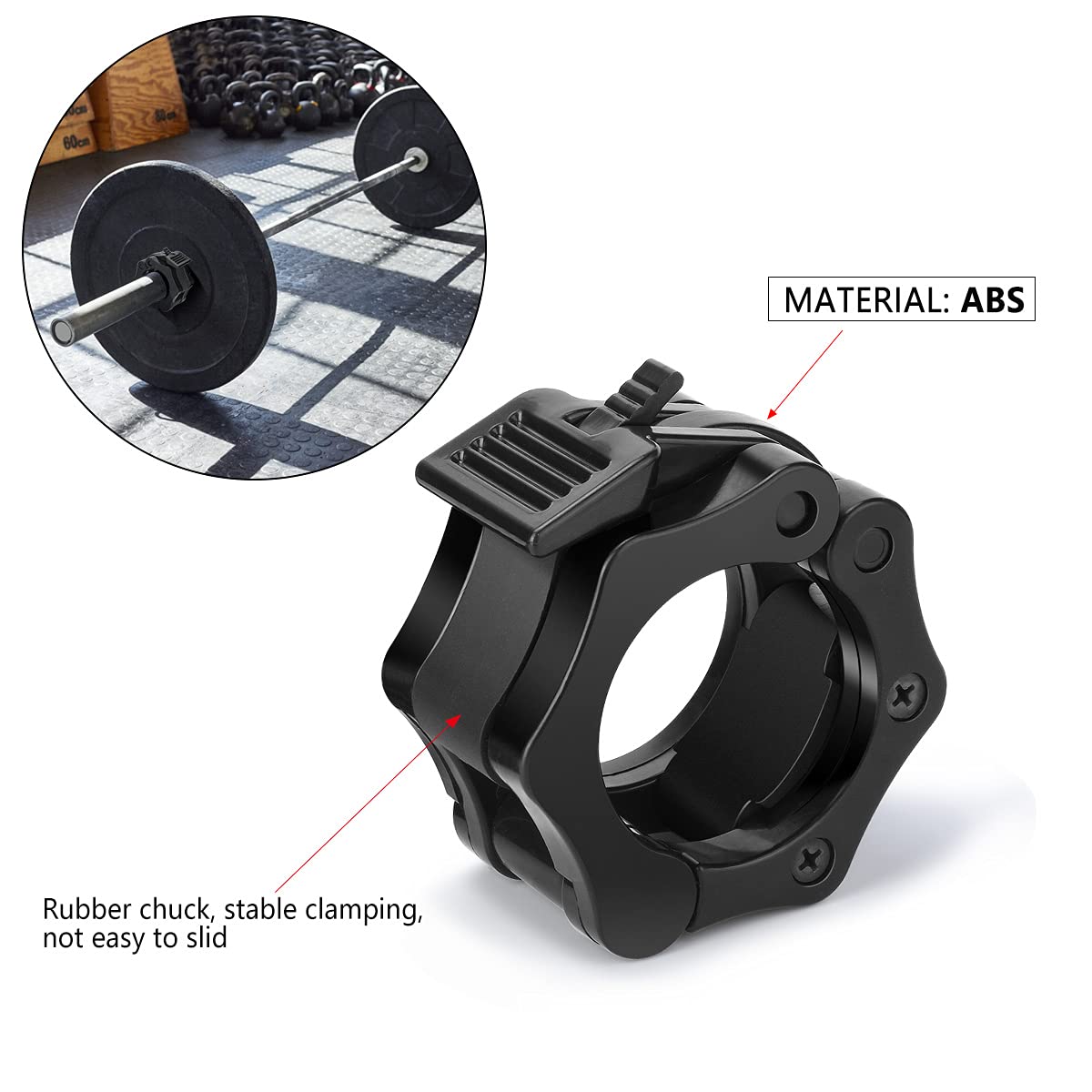 Endlich keine rutschigen Gewichte mehr! Diese ScSPORTS Langhantelklemmen halten deine Scheisen bombenfest - egal wie hart du trainierst. Perfekt für Stangen mit 25 oder 30 mm Durchmesser.\\n\\nDer innere Gummibeschlag sorgt für super Halt ohne zu verrutschen. Einfach den Klickverschluss zudrücken und schon sitzt alles fest. So kannst du dich voll auf dein Training konzentrieren, ohne ständig nachziehen zu müssen.\\n\\nJede Klemme wiegt nur 50 Gramm - kaum spürbar, aber mega effektiv. Aus strapazierfähigem Kunststoff und Gummi, also nichts was rosten kann oder kaputt geht.\\n\\nOb Bankdrücken, Kniebeugen oder Kreuzheben - mit diesen Klemmen trainierst du sicherer und effektiver. Verhindert nicht nur Verletzungen durch verrutschte Scheiben, sondern gibt dir auch das nötige Selbstvertrauen für schwere Gewichte. Ein absolutes Must-Have für jedes Homegym oder Fitnessstudio. Deine beste Investition für sicheres Training!