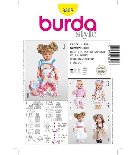 Nähen für die Lieblingspuppe war noch nie so einfach! Mit diesem Burda Schnittmuster 7753 kreierst du die süßesten Outfits für Puppen. Ob elegantes Ballkleid mit Bolero, coole Hose mit Jacke oder praktische Kopfbedeckung - hier ist alles dabei! Die Anleitungen sind super verständlich mit klaren Schritt-für-Schritt Erklärungen. Perfekt für Näh-Anfänger und erfahrene Hobby-Schneiderinnen. Einfach ausschneiden, Stoff wählen und losnähen! Die Outfits lassen sich super kombinieren - deine Puppe kann sich jeden Tag neu stylen. Tolle Geschenkidee für kleine Puppenmuttis! Aber Achtung: Einmal geöffnet, können die Schnitte nicht zurückgegeben werden. Also am besten gleich zuschlagen und mit dem Nähen loslegen! Deine Puppe wird sich über die neue Garderobe freuen!