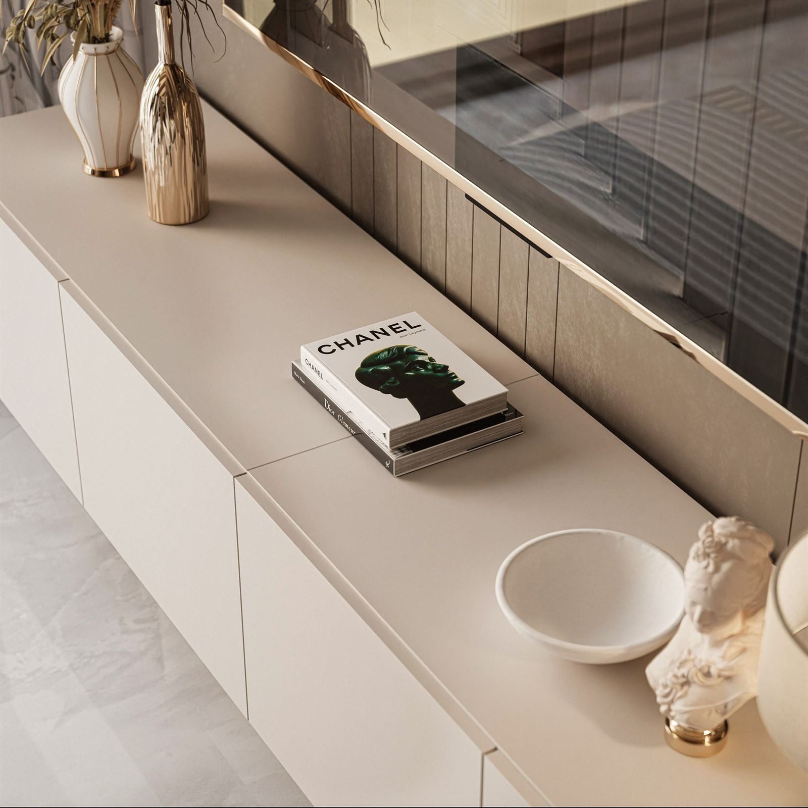 Stylish und super praktisch! Der Lookway COLGANTE TV-Schrank in zartem Kaschmir matt bringt modernes Design in dein Wohnzimmer. Mit 200cm Breite bietet er reichlich Platz für TV, Soundbar und Multimedia-Geräte. Das geniale Push-to-Open System macht Griffe überflüssig - einfach leicht drücken und die Türen öffnen sich sanft und geräuschlose. Die schrägen Metallbeine in Schwarz geben dem Schrank eine elegante Leichtigkeit und sind super stabil. Aus hochwertigen, 16mm starken laminierte Platten gefertigt, ist dieser Schrank ein echter Dauerbrenner. Die ABS-Kanten schützen vor Abnutzung und machen ihn alltagstauglich. Mit zwei geräumigen Fächern findest du Platz für alles, was nicht sichtbar sein soll. Perfekt für alle, die cleanes Design lieben und trotzdem nicht auf Stauraum verzichten wollen. Einfach selbst montieren und schon verwandelst du dein Wohnzimmer in eine stylische Wohlfühloase!
