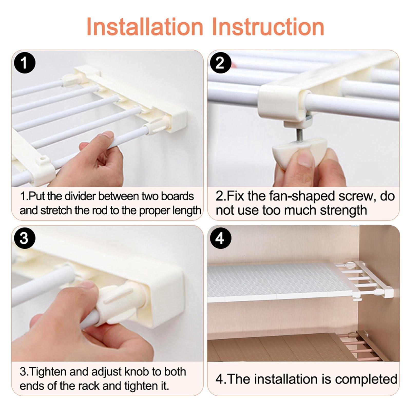 Boah, wie praktisch ist das denn? Dieses Schrankspannregal bringt Ordnung in jeden Schrank! Verstellbar von 30-40cm, aus robustem PP und Stahlrohr - hält bis zu 20kg aus.\n\nOhne Bohren, ohne Schrauben - einfach zwischen die Wände spannen und schon hast du mehr Stauraum. Breite: 24cm, perfekt für Standard-Schränke.\n\nEinsatzmöglichkeiten:\n• Kleiderschränke für Socken & Accessoires\n• Küchenschränke für Gewürze & Vorräte\n• Badezimmer für Hygieneartikel\n• Bücherregale als Trennwand\n\nWarum es sich lohnt:\n• Einfache Installation - in Sekunden fertig\n• Stabil und langlebig\n• Vielseitig verwendbar\n• Platzsparend\n• Günstige Ordnungslösung\n\nEhrlich gesagt: So einfach war Aufräumen noch nie! Endlich kein Chaos mehr im Schrank.