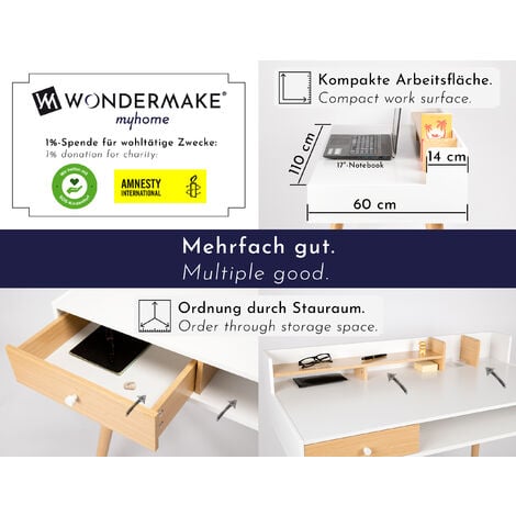 Perfekt fürs Home Office! Dieser massive Schreibtisch aus Kautschukholz bringt Stil und Funktionalität in dein Arbeitszimmer. Mit 120x60x75cm bietet er genug Platz für deinen Computer und Arbeitsutensilien. Die zwei praktischen Schubladen und das untere Ablagefach sorgen für Ordnung - ideal für Stifte, Dokumente oder deinen Router. Dank der integrierten Haken kannst du sogar deine Tasche oder Kopfhörer griffbereit aufbewahren. Das coole Design mit abgerundeten Ecken ist nicht nur sicher für Familien mit Kindern, sondern sieht auch mega modern aus! Der Aufbau ist super easy - in etwa 20 Minuten steht dein neuer Schreibtisch. Perfekt fürs Wohnzimmer, Schlafzimmer oder als stylischer Computertisch. Die robuste Konstruktion wackelt nicht und hält ewig. Mach dein Home Office zu deinem Lieblingsplatz!